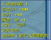 坤地纹章:武将专用纹章、攻击:100、知力:10、地:1、隐藏属性暴击率:15%